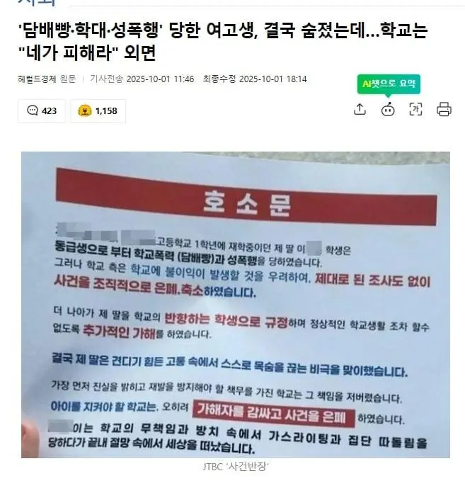 영주 여고생 극단 선택