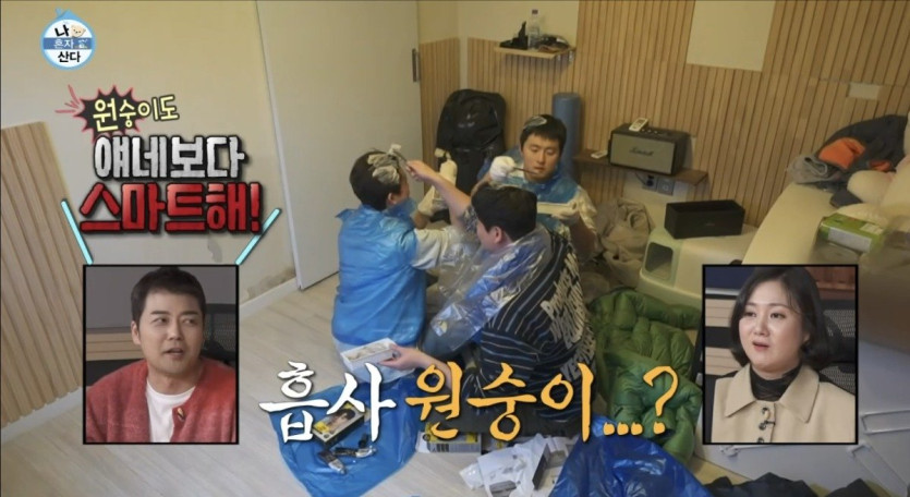 같은 염색약으로 새치 염색하고 머리색이 똑같아진 기안,대호,이장우