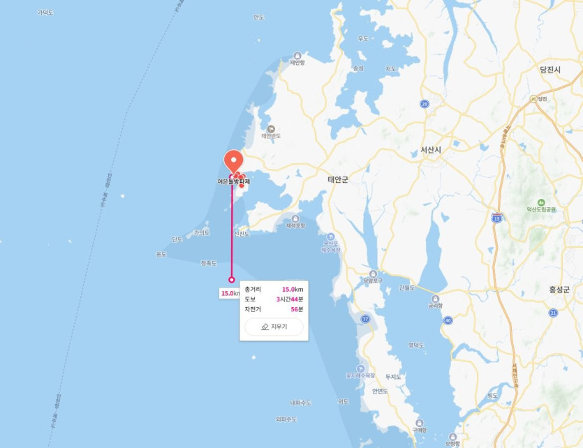 https://n.news.naver.com/article/003/0013523877?sid=102지도에서 남쪽에서 발견된건 아니고 이해돕기 쉽게 어은돌 15km 해상이 얼마나 근거리인지 찍어봄