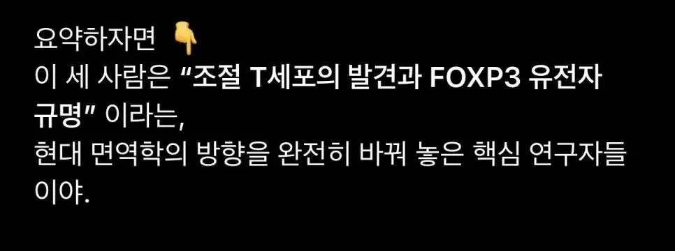 "면역 말초 관용" 연구에 대한 노벨상이네요.