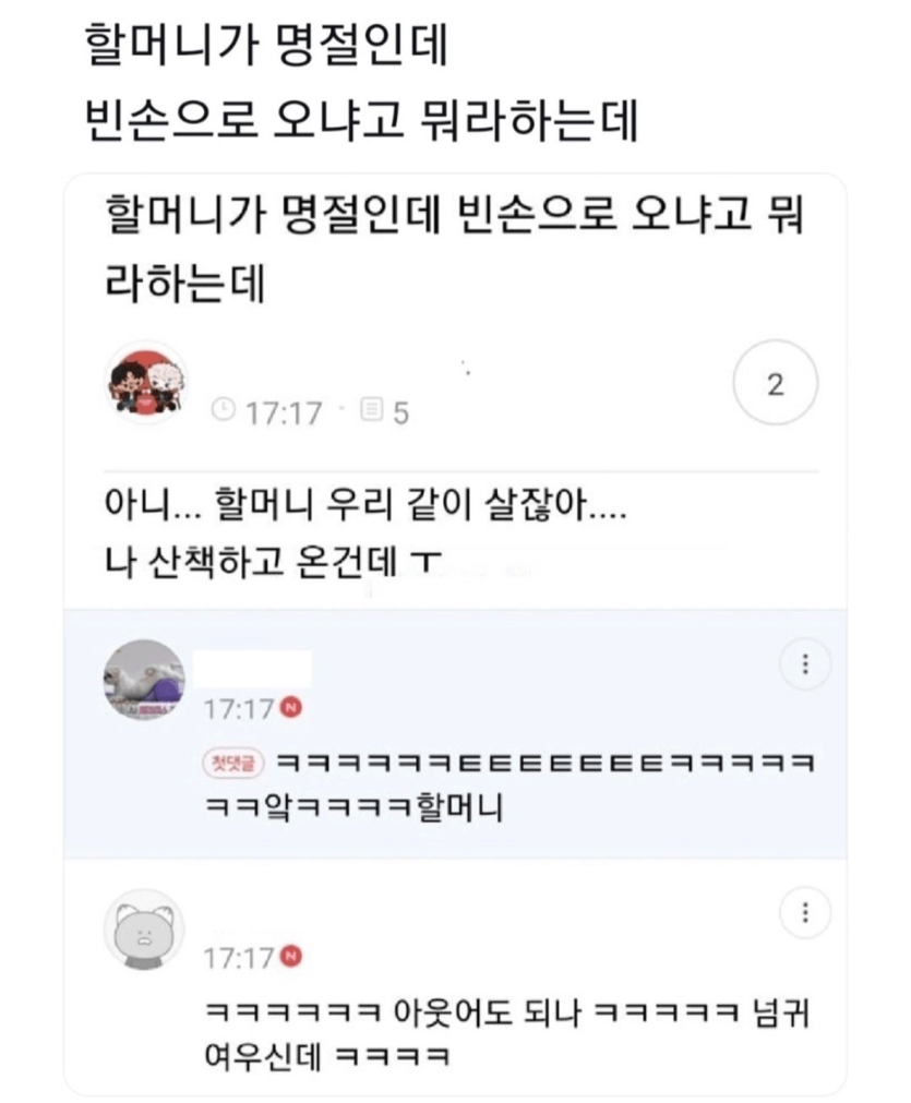 할머니가 명절인데 빈손으로 오냐고 뭐라하는데.jpg