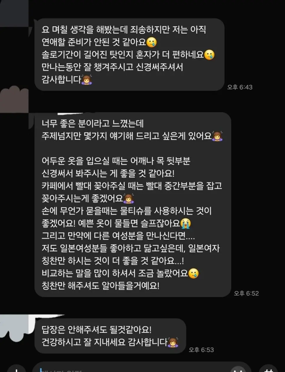 소개팅자리에서 일본여성 칭찬을 왜하는거야