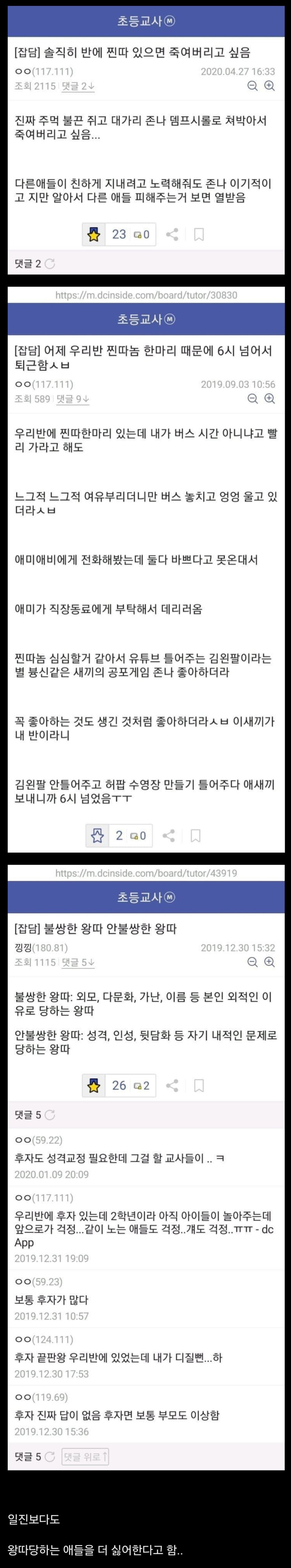 모 초등교사가 일진보다 더 혐오하는 존재
