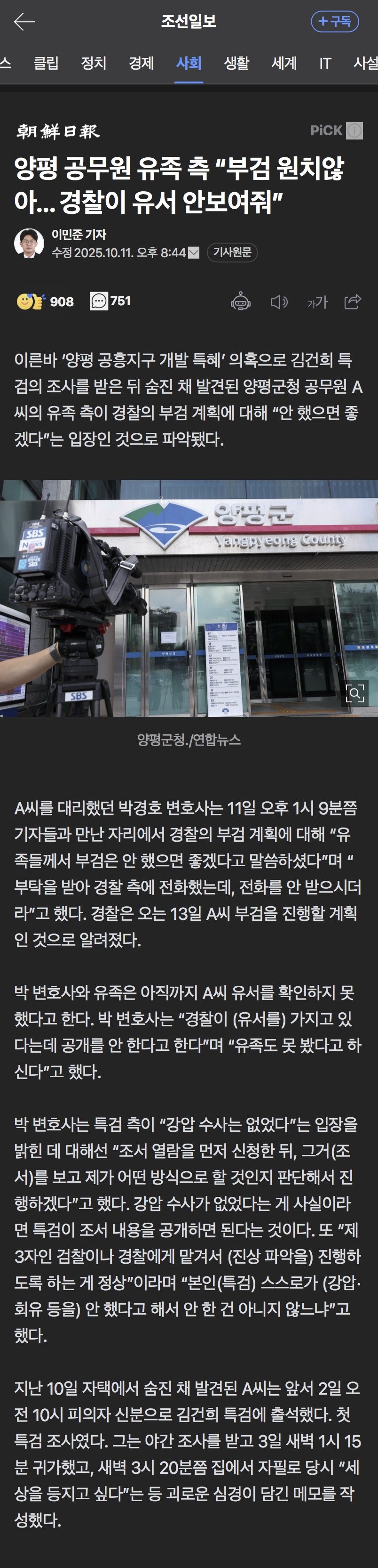 안타깝게 돌아가신 양평 공무원분 근황..어이없음 도미노패밀리 0 1 0 0 3시간전 주소복사 복사되었습니다! 1. 유족동의없는 부검계획 진행예정 (유족은 원치않음) 2. 유족에게 아직 유서 보여주지도 않음 0 0