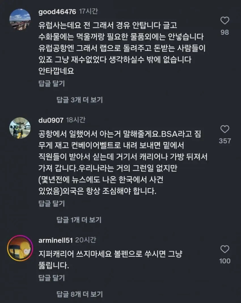 싱글벙글 유럽 공항에서 종종 벌어지는 수하물 절도