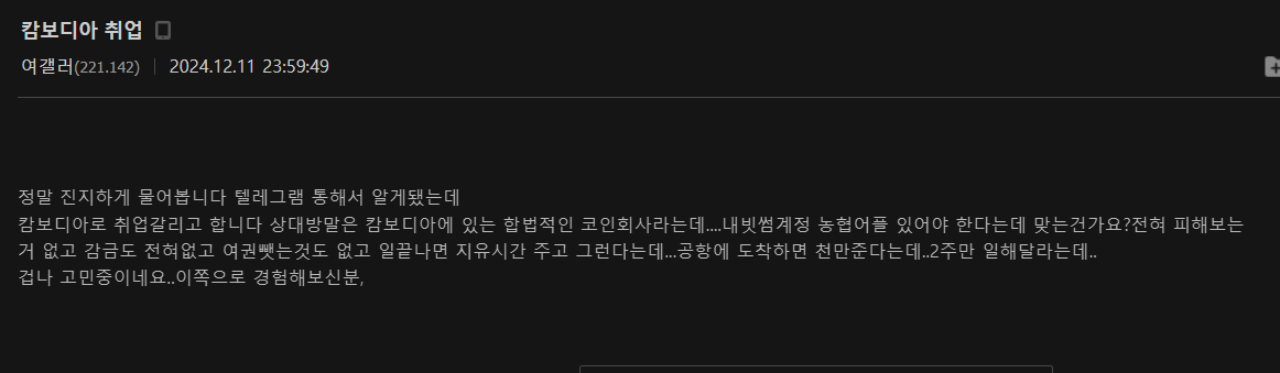 오싹오싹 디시의 캄보디아 취업사기 실제사례들
