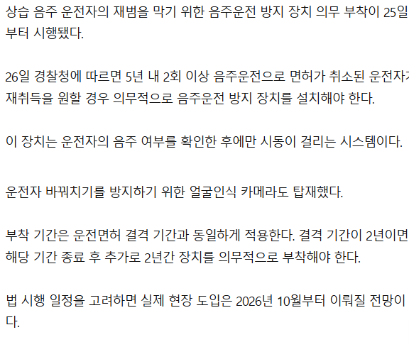 단 , 재범 운전자 한정, 실제 도입은 26년 10월