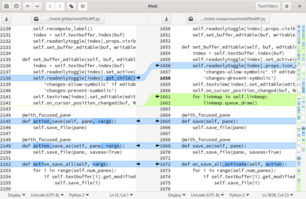 Meld는 코드 변경 사항을 검토하고 패치를 이해하는 데 도움이 됩니다. 병합에서 무슨 일이 일어나고 있는지 파악하는 데 도움이 될 수도 있습니다.