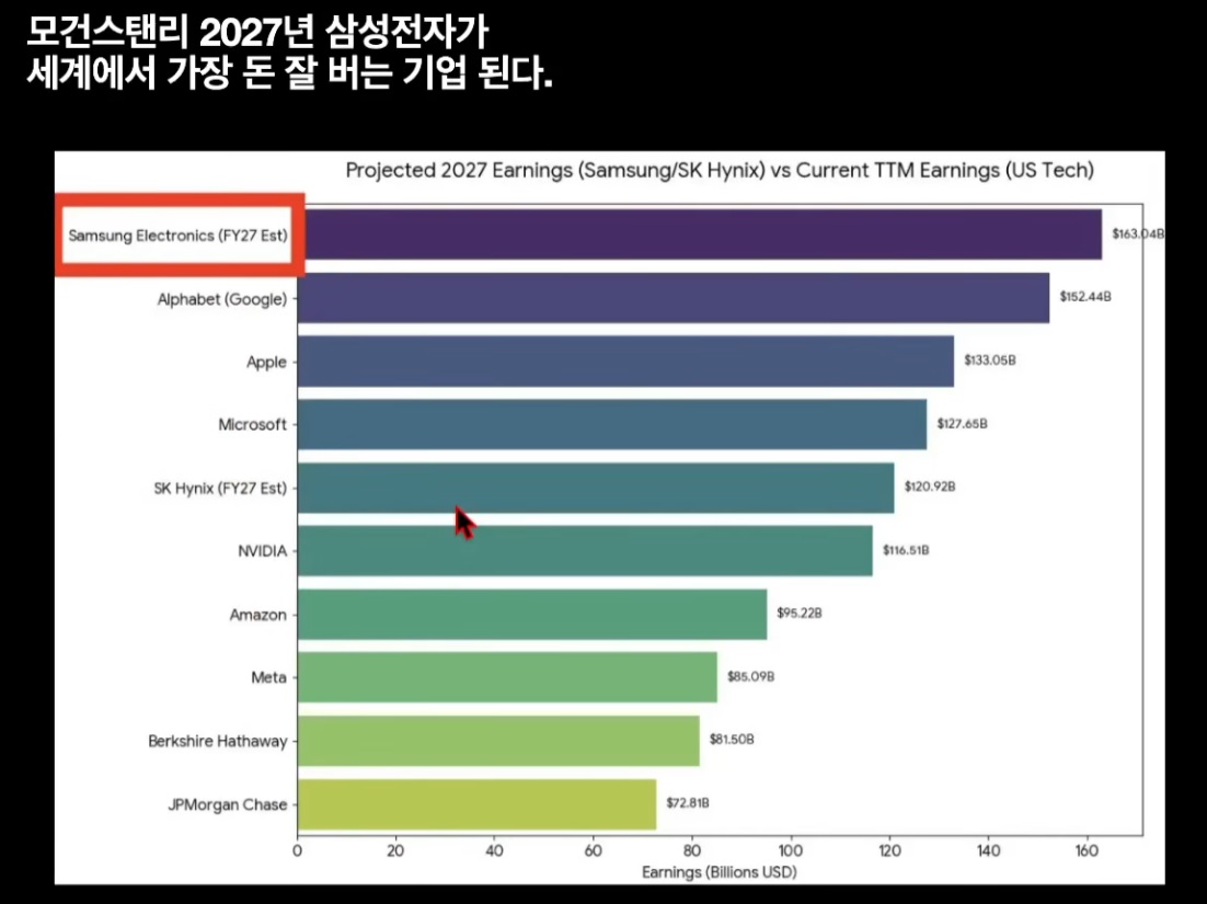 모건스탠리 2027년 삼성전자가 세계에서 가장 돈 잘버는 기업이 된다 모스크바멀대 0 14 0 0 02.03 06:14 주소복사 복사되었습니다! 1위 삼성 5위 하이닉스 https://youtu.be/jp3p_57FOIY?si=aY6upH9qEyFmFZxi 0 0