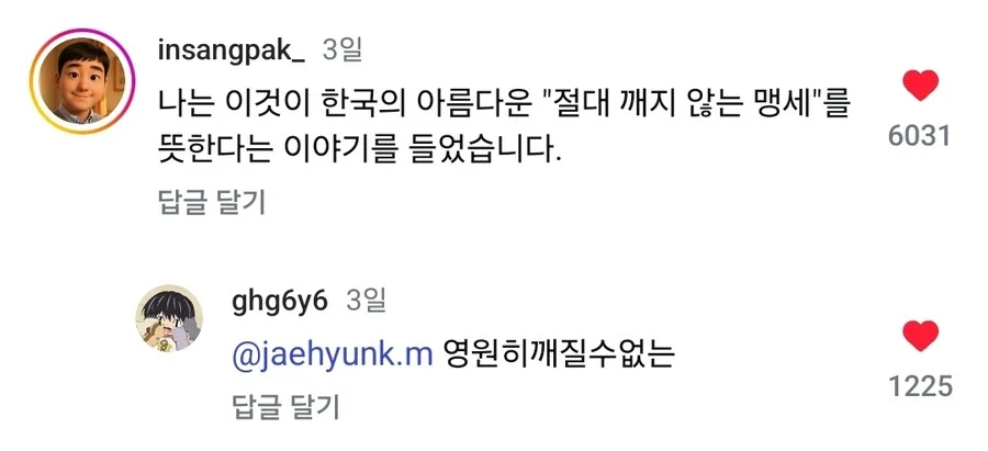 '절대 깨지지않는 맹세'를 뜻한다는 한국의 제스쳐