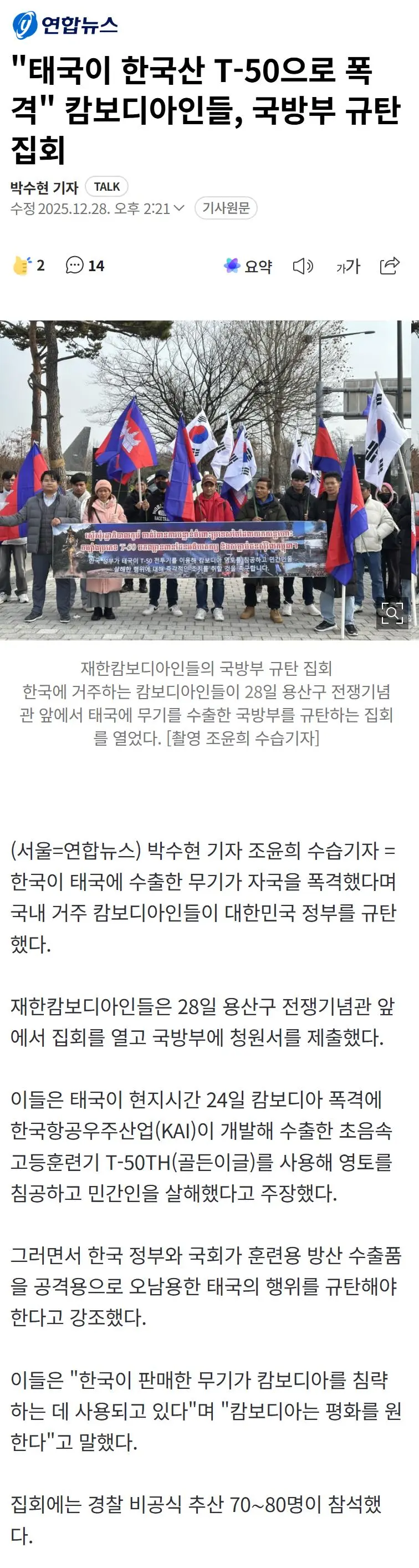 국내 캄보디아인들, 대한민국 국방부를 규탄하기 위해 집회 손조꾸 0 10 0 0 5시간전 주소복사 복사되었습니다! 출처 : 연합뉴스누가 보면 우리나라 공군이 가서 폭격한 줄 알겠음진짜 염병들 하네 ㅋㅋㅋㅋㅋㅋ 0 0