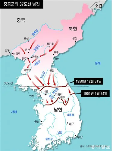거의 37도선까지 전선이 밀리는 상황에 처했다