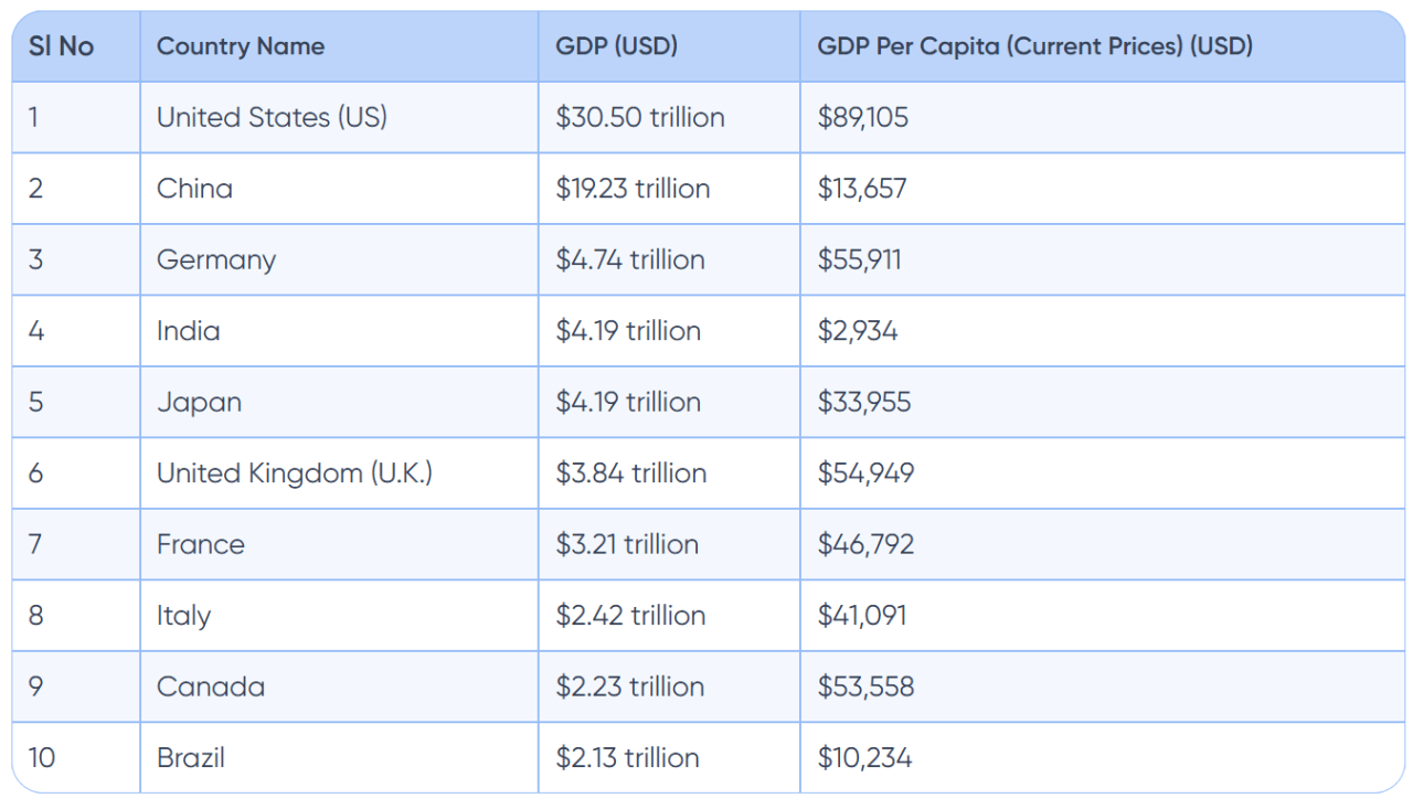 https://cleartax.in/s/world-gdp-ranking-listThe world GDP ranking 2026 shows the largest economies by nominal GDP in U.S. dollars, based on the IMF’s World Economic Outlook. The biggest economies in the world continue to be dominated by the U.S., China, Germany, India and Japan.