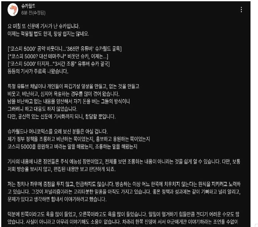 개인적으로 슈카 해명문이 납득이 안가는 이유 ㄷㄷㄷㄷㄷㄷㄷㄷㄷㄷㄷㄷㄷㄷㄷㄷ