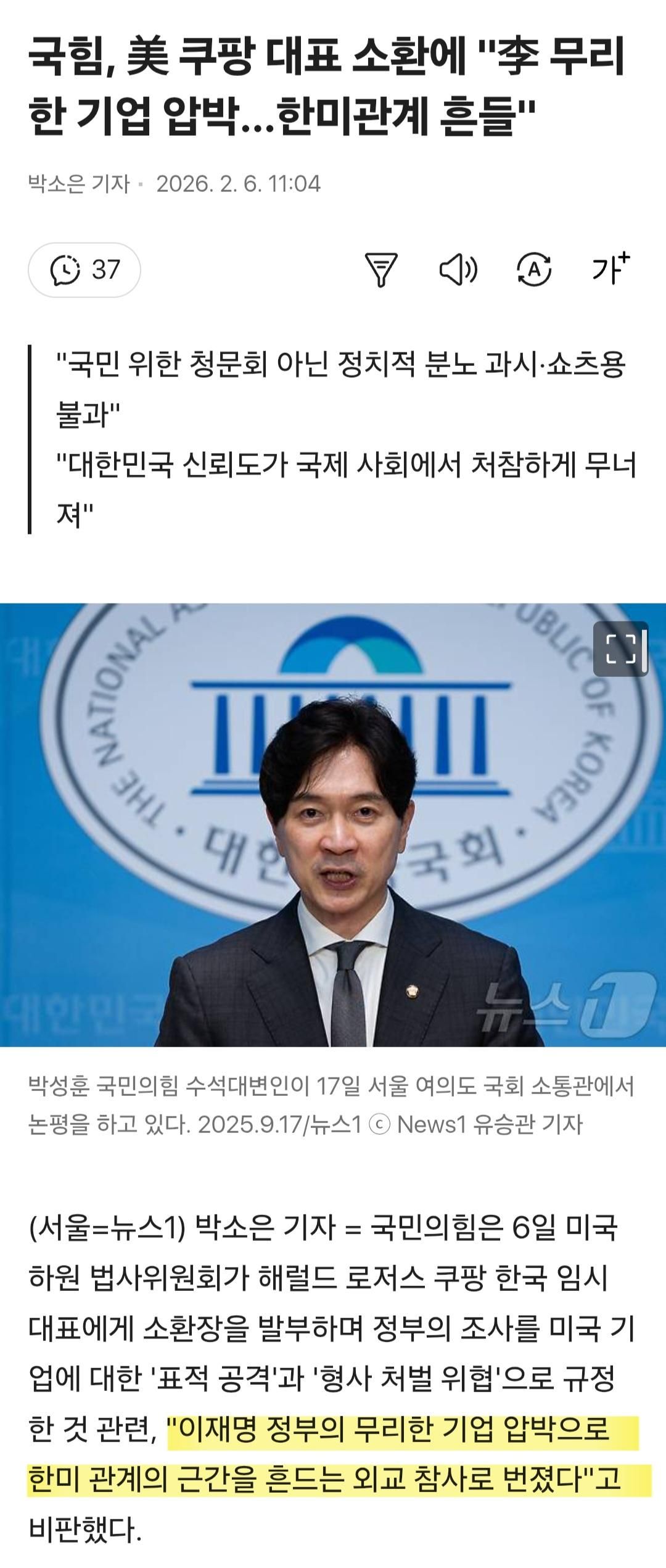 국민의힘...이재명 정부 때문에, 한미관계 흔들