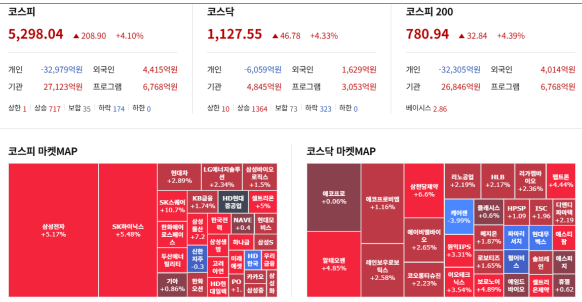 1월 9일 한국 주식시장 코스피, 코스닥 다 4% 넘게 강하게 반등하였습니다 외인, 기관의 양매수가 도움이 되었습니다. 특히 코스피 선물을 외인이 8천 계좌(약 1조 3천억원)을 매수하여 프로그램 매수를 유발하였습니다. 삼성전자, 하이닉스도 강하였지만 지주회사 및 전력기기, 원자력 관련 종목들 흐름이 강하였습니다. 엘론 머스크의 우주 태양광 소식에 태양광 관련 주식들 흐름도 좋았습니다. 코스닥은 정부의 연기금 코스닥 비중을 늘리는 방침에 바이오 및 일부 반도체 소부장 종목이 강하였습니다. 개인들은 지난주 금요일 6조를 매수하였다가 어제는 코스피, 코스닥 합쳐 4조를 매도하여 혹시 구정전 나올 수 있는 조정에 대비하였습니다.