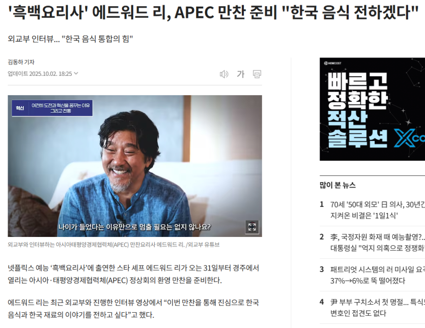 '흑백요리사' 에드워드 리, APEC 만찬 준비 "한국 음식 전하겠다"