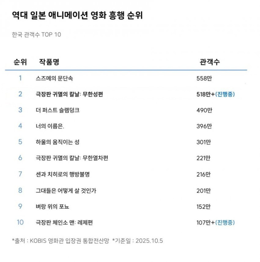 체인소맨 극장판 한국에서 100만 돌파...일본 반응