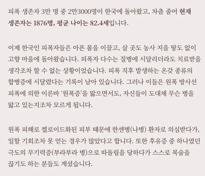 6. 피폭 후유증으로 병에 걸려서 죽어갔는데 이유도 모름