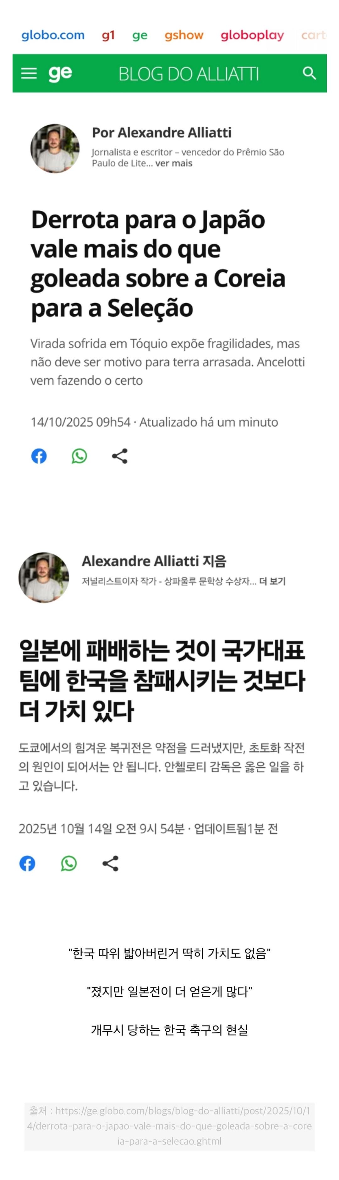 일본 曰 “한국처럼 브라질에 털리면 월드컵 우승 힘들어”