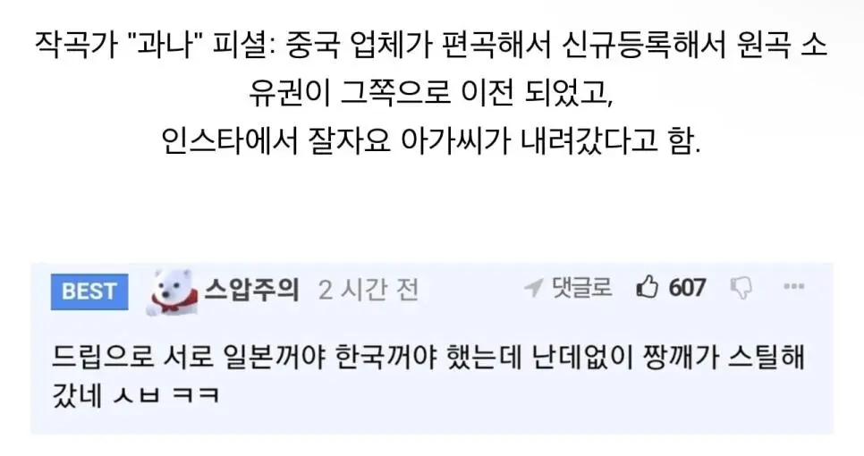 일본과 한국이 자기네곡 아니라고 싸우던 곡 근황
