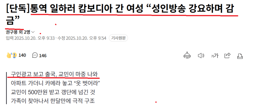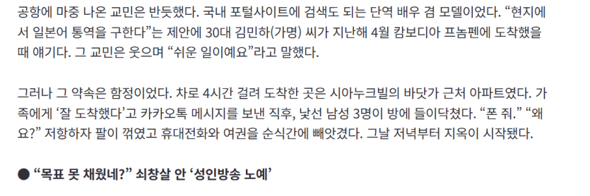 실제로 캄보디아에 사는 한국 교민이 캄보디아에 통역일 하러온 여성을 500만원 받고