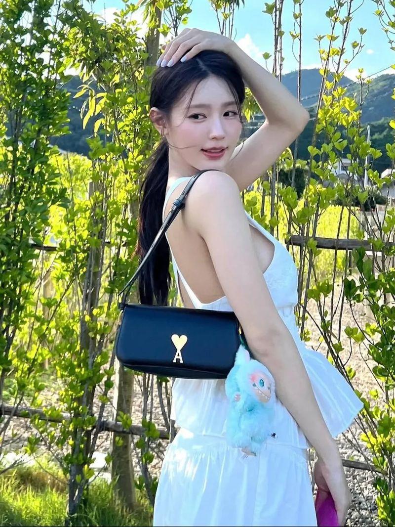 스테이씨 아이사 눈빛 블랙 나시 숙인 가슴골