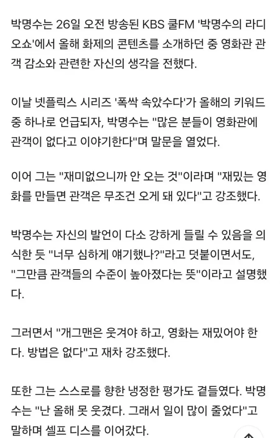 극장에 관객이 줄어든 이유를 설명하는 박명수