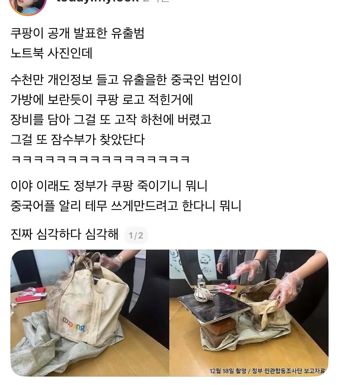 쿠팡 잠수부 사진 쓰레드글 반응.jpg