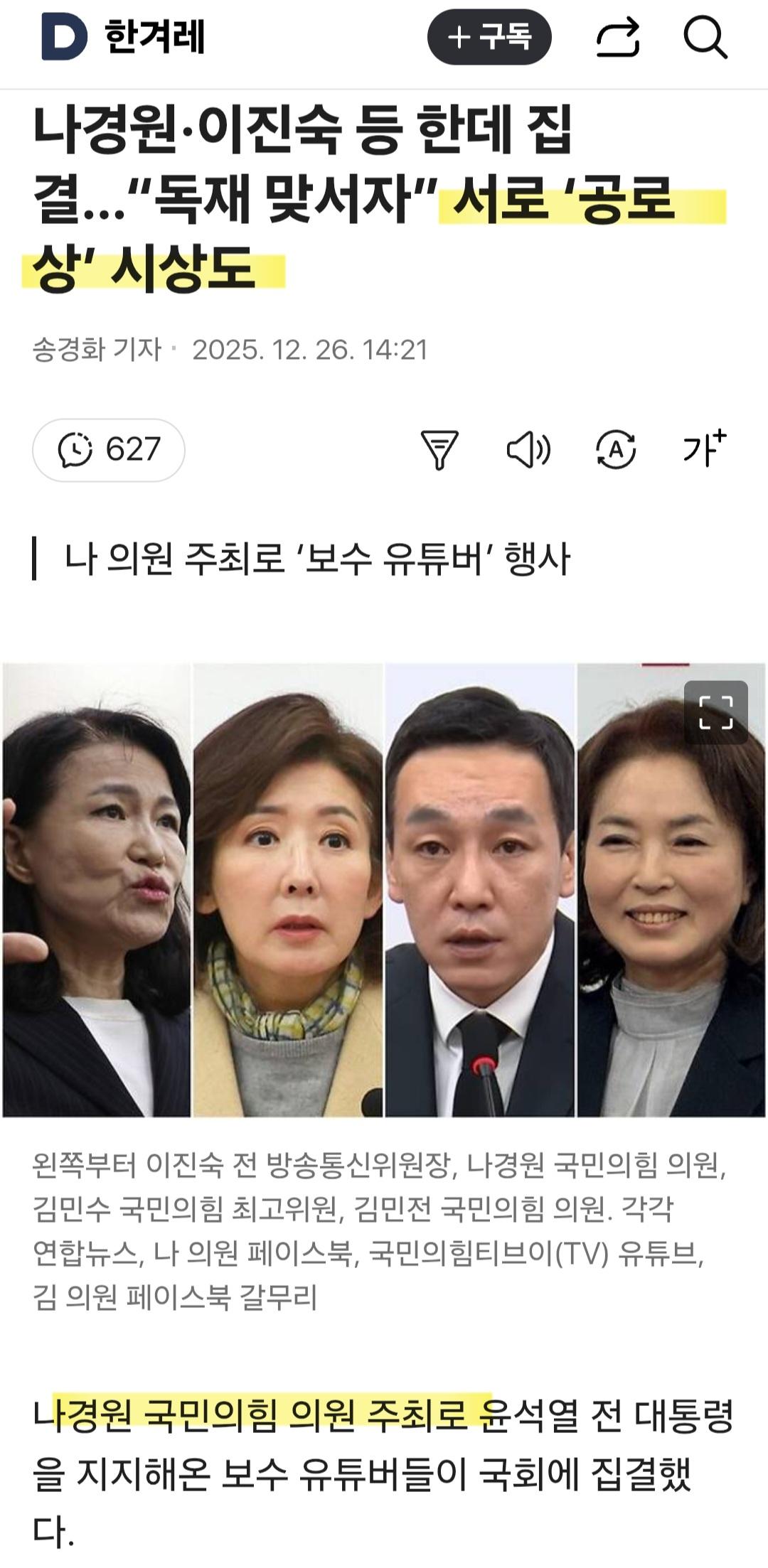 나경원 대상 수상...이진숙 특별공로상 수상 ㅋ