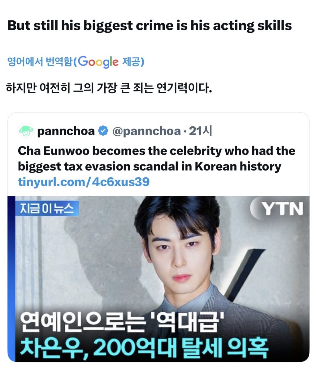 차은우가 "연기로 보답하겠습니다" 할 수 없는이유