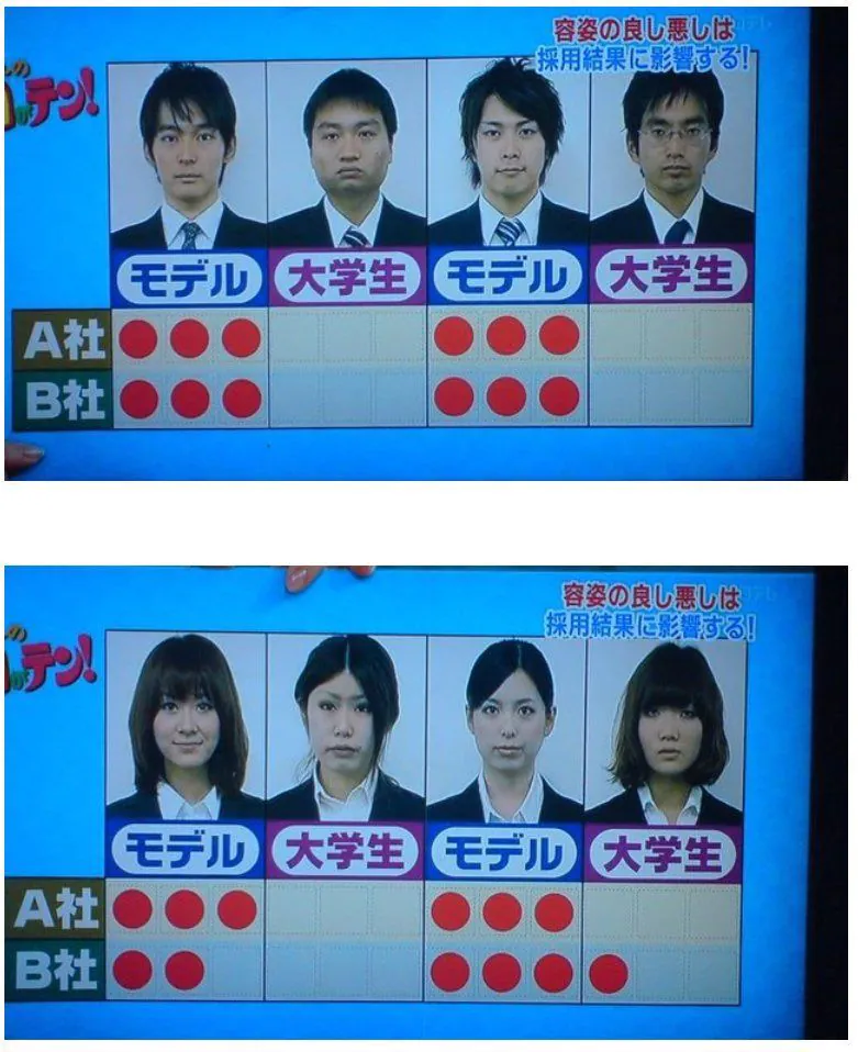 옆나라 일본에서 조사한 모델과 대학생의 채용결과