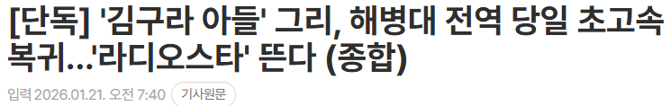 https://m.entertain.naver.com/home/article/109/0005465365다음주 수요일 전역 ㄷㄷㄷㄷㄷ