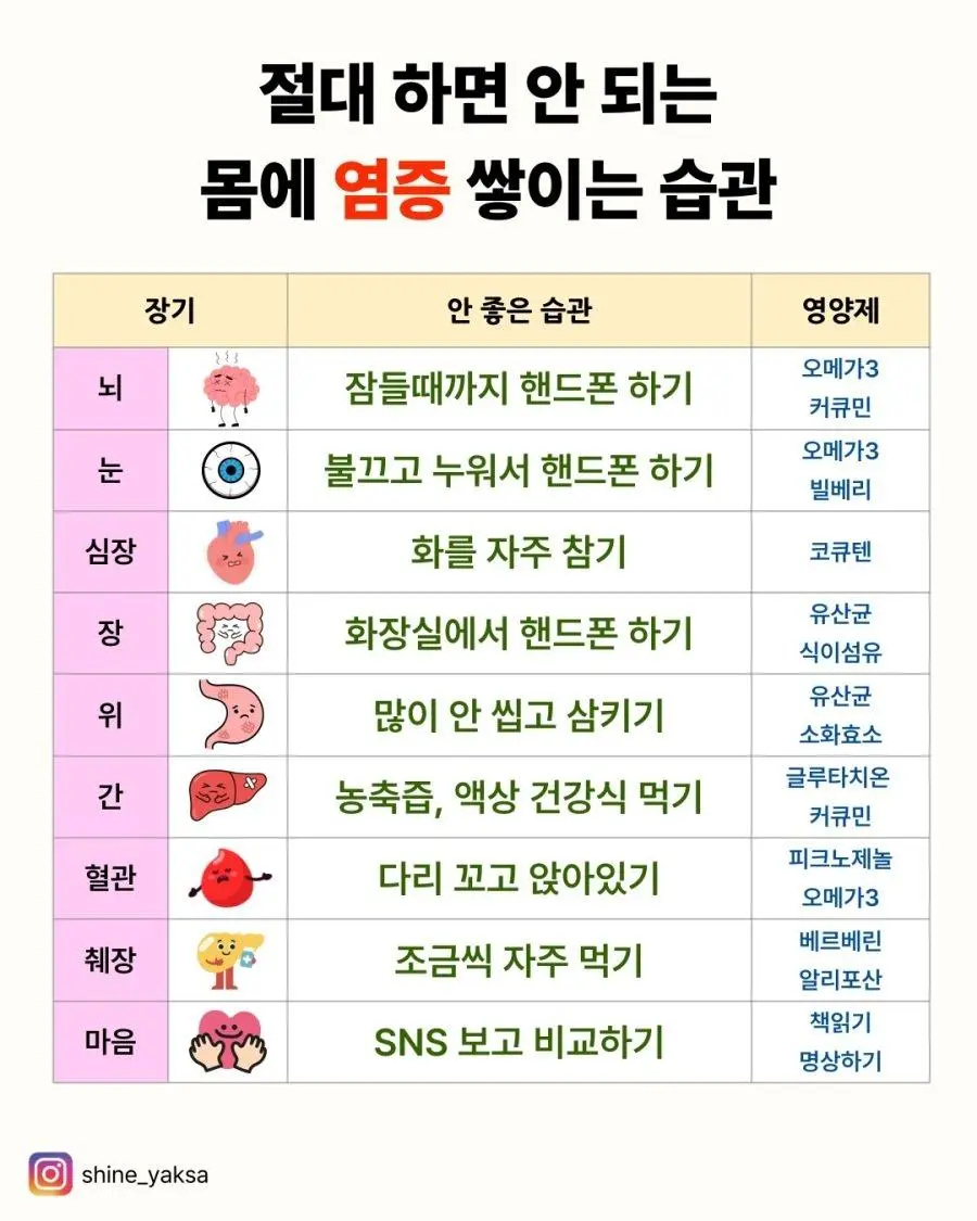 절대로 하면 안되는 몸에 염증 쌓이는 습관 jpg