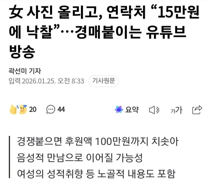 女 사진 올리고, 연락처 “15만원에 낙찰”…경매붙이는 방송