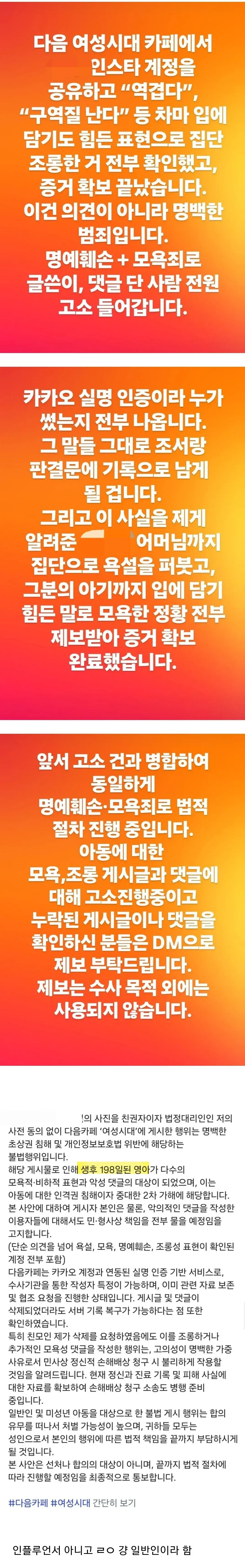 생후 198일 아기 얼굴 조롱하다 대량고소 들어간 여성시대 우동균 0 3 0 0 1시간전 주소복사 복사되었습니다! 일반인 애기를 욕을 살벌하게 하고들있다고함 이유는 단지 행복해보이고+남자아이라서 0 0