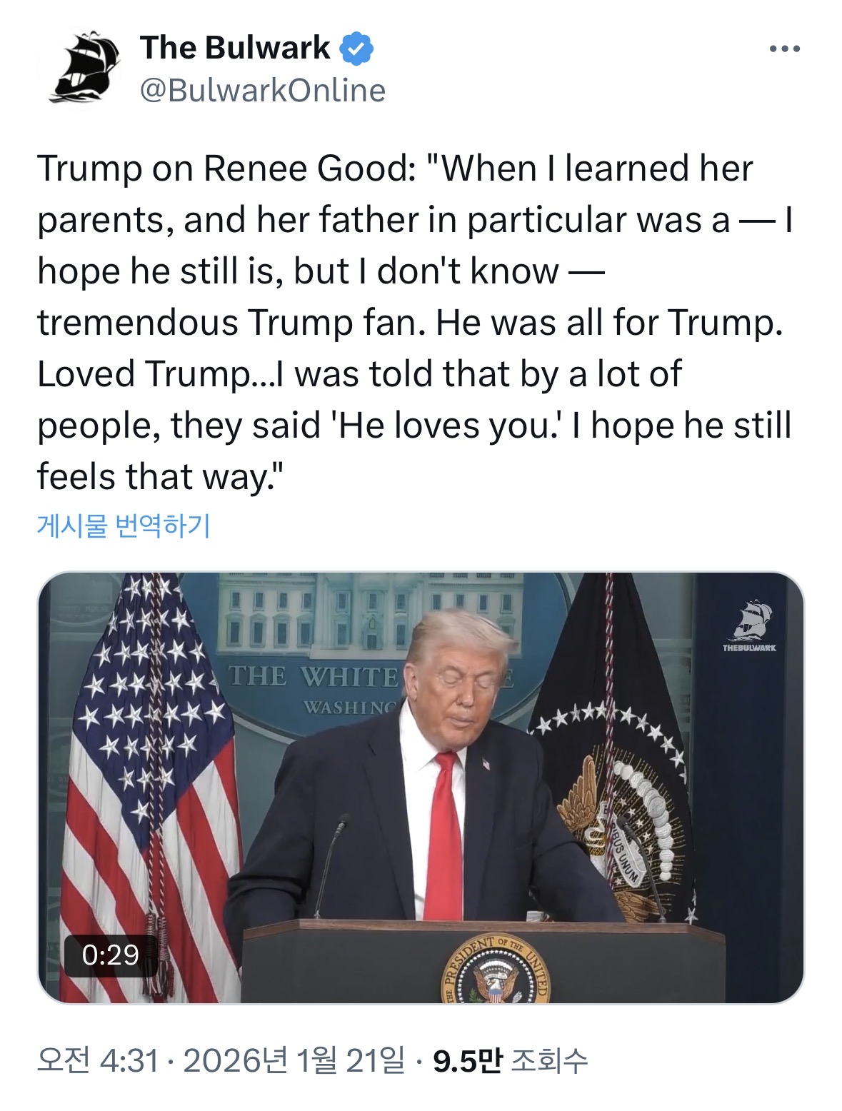트럼프 “ICE 총격 피해자의 아버지가 여전히 내 지지자이길 바란다”