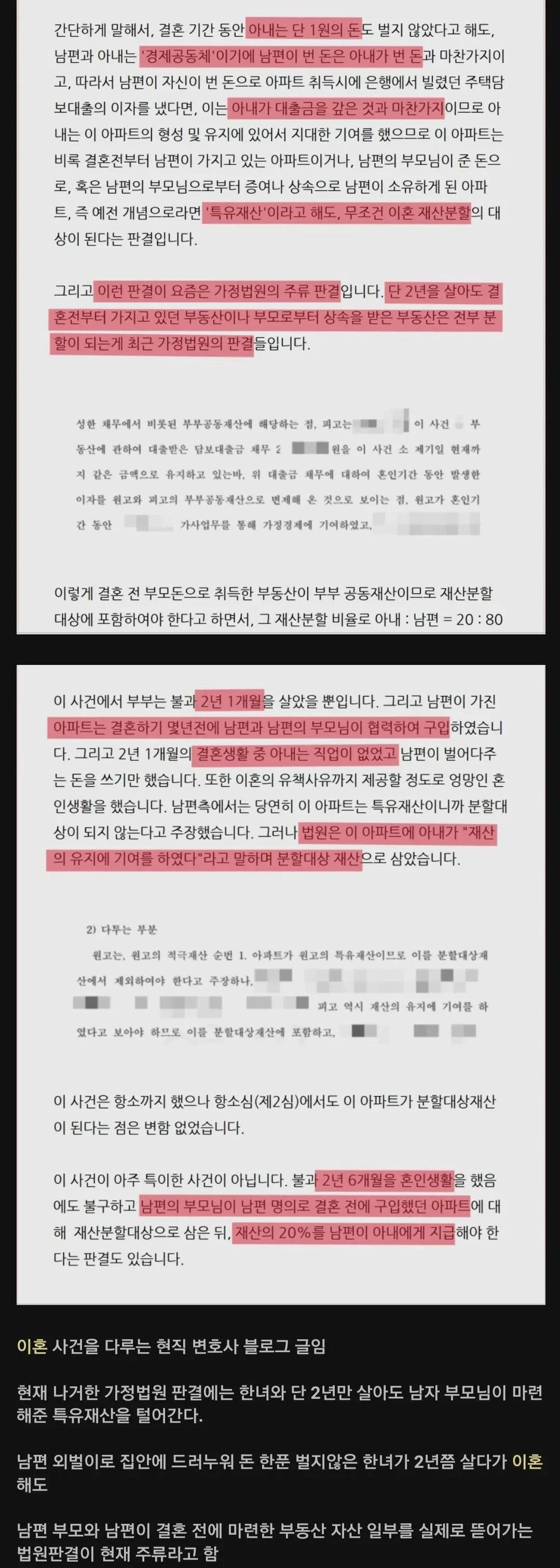 2년만 살고 이혼시에도 특유재산 분할