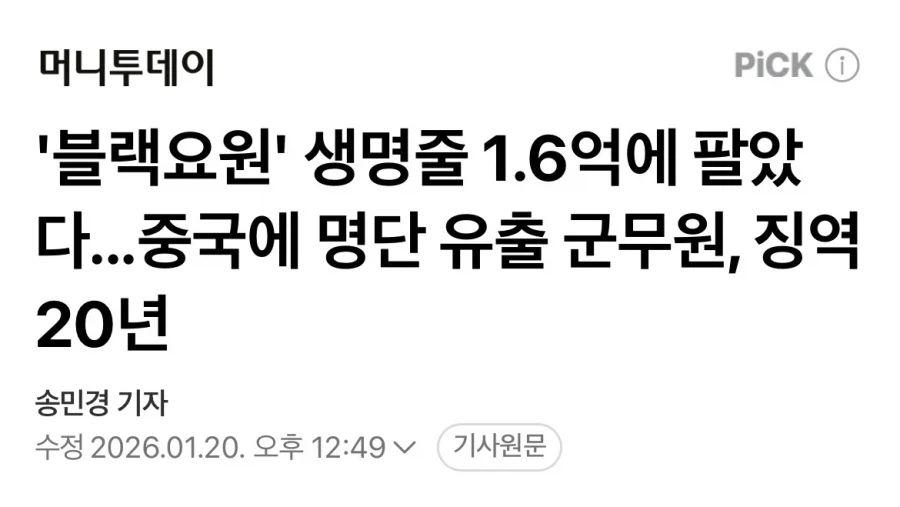 블랙요원 명단 유출한 군무원