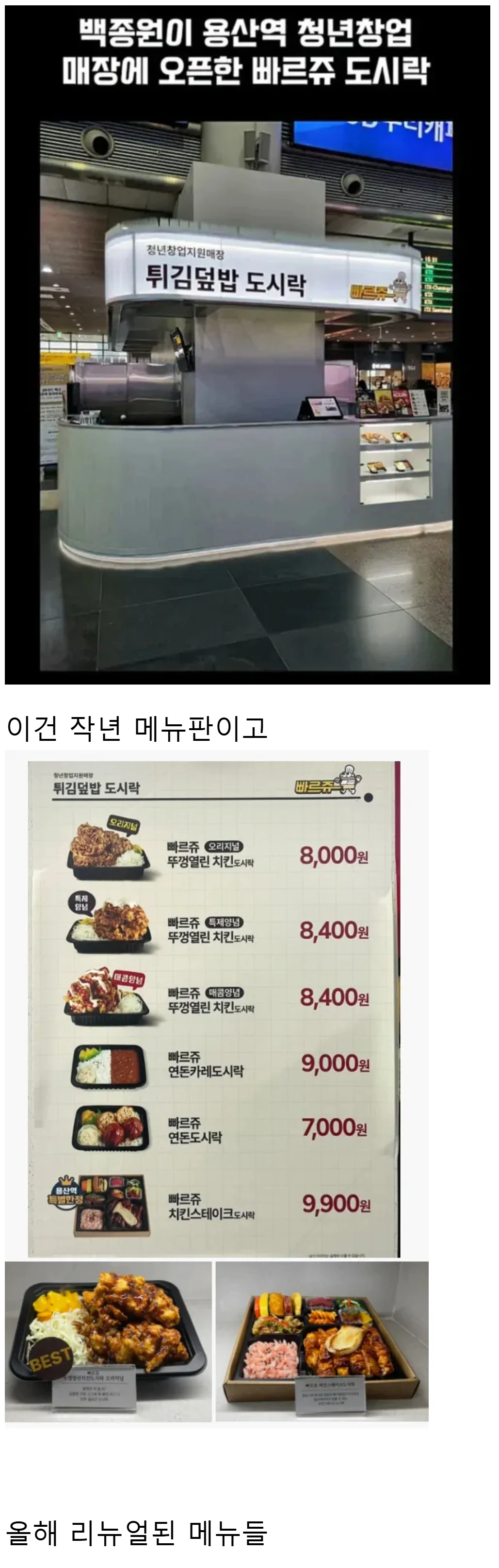 최근 리뉴얼한 백종원의 빠르쥬 도시락 근황