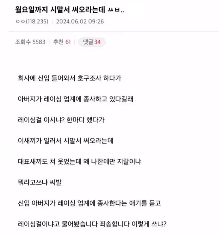 월요일까지 시말서 써오라는데 ㅅㅂ