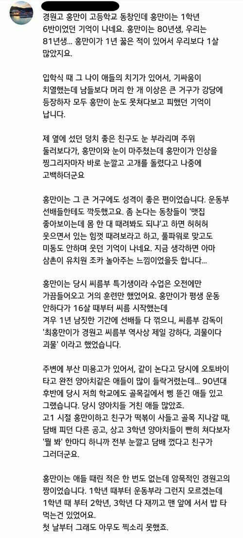 암묵적으로 1학년때부터 경원고 짱이었던 최홍만