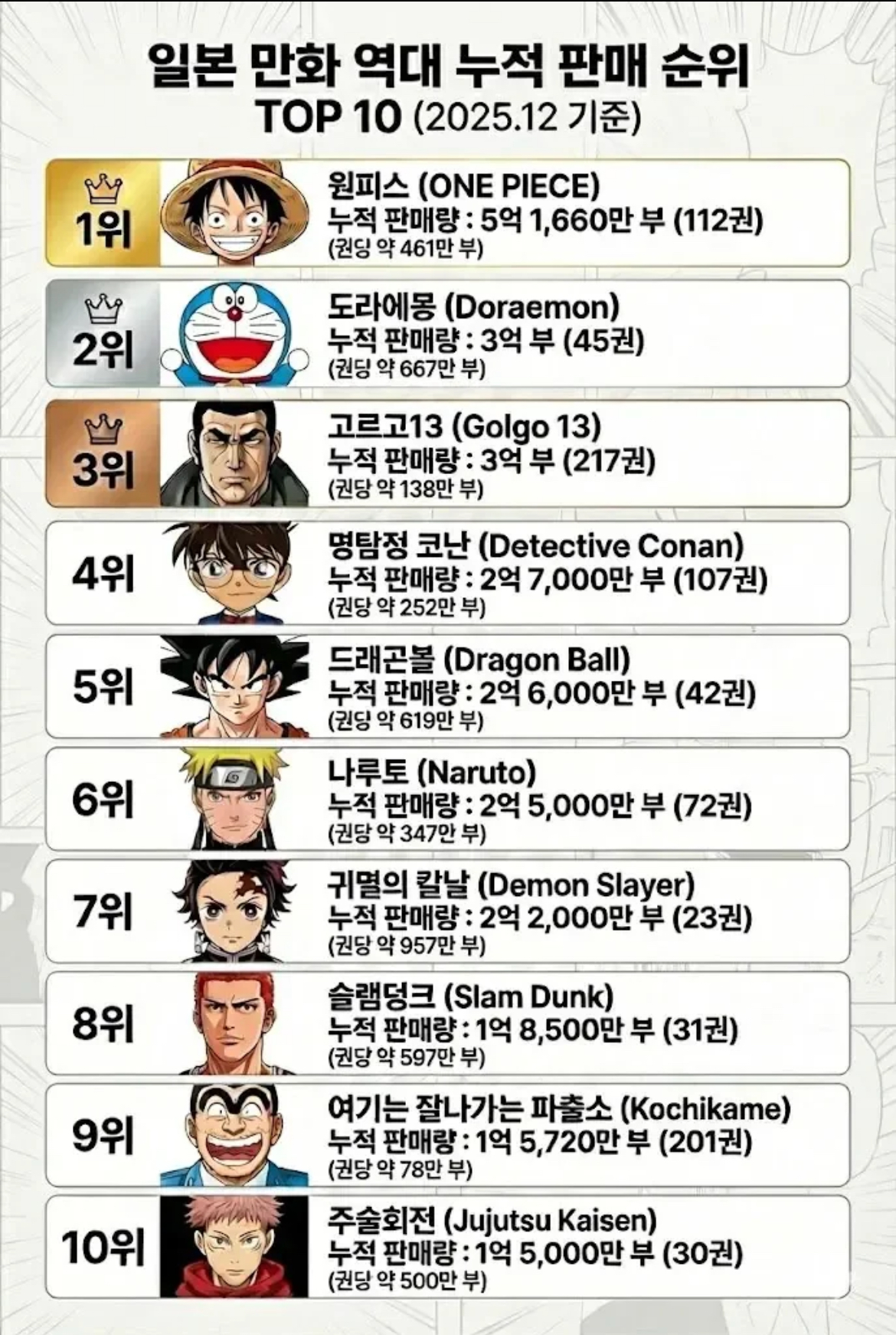 일본 만화 역대 판매량 1~20위