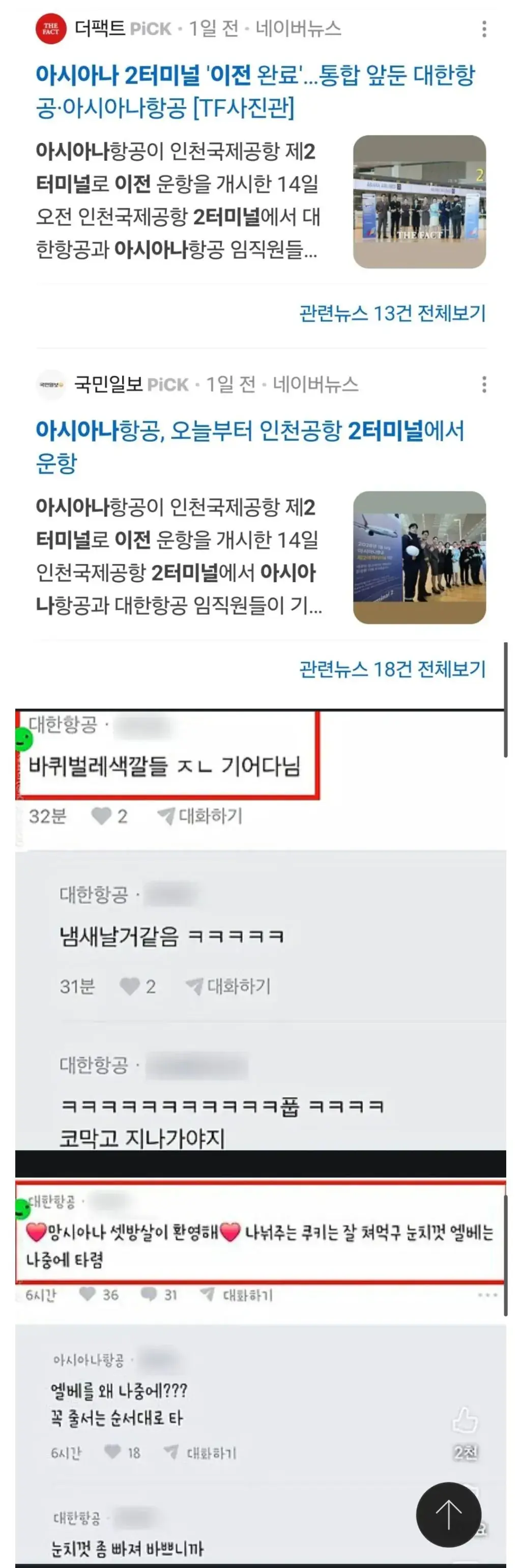 현재 아시아나 직원들 상대로 일진놀이중인 대한항공..JPG