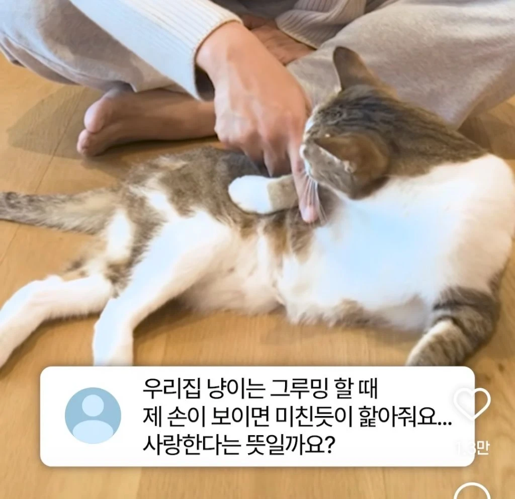 우리 냥이는 그루밍 할 때 제 손을 햝아줘요