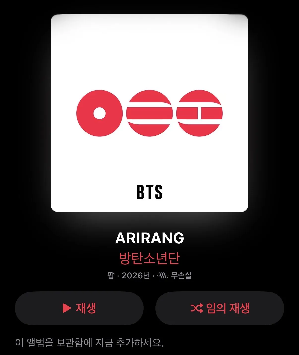 새 앨범명 "아리랑"