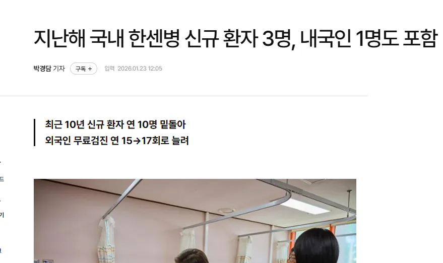 지난해 국내 한센병 신규 환자 3명, 내국인 1명도 포함