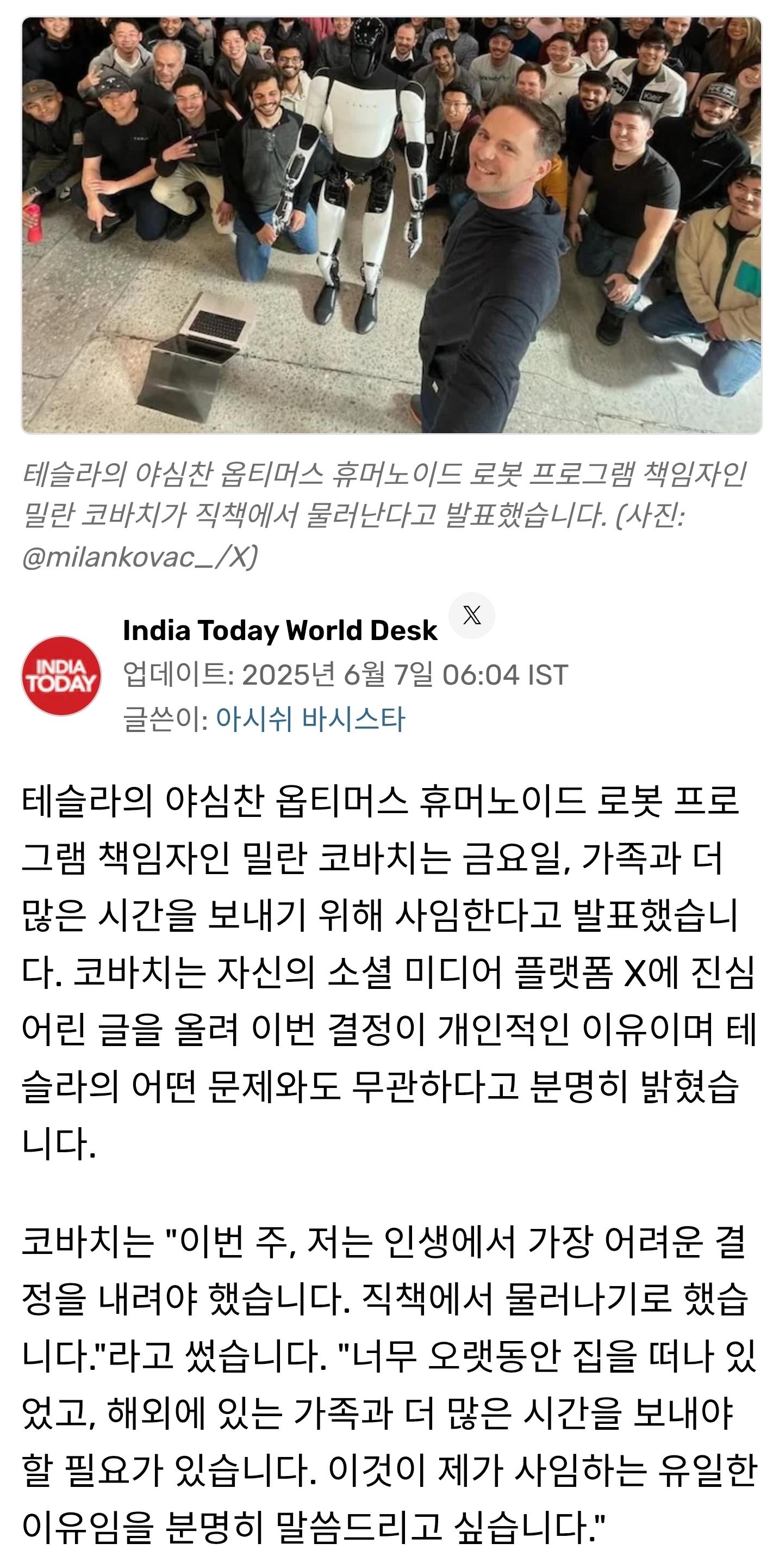 전 테슬라 부사장 밀란 코박