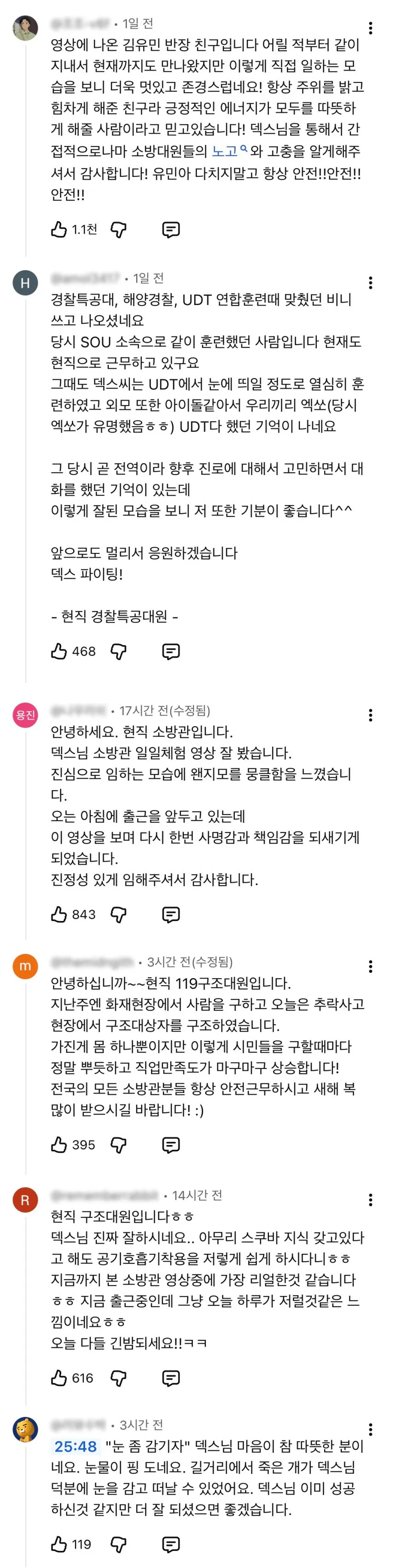 현직 소방관들의 댓글이 달리고 있는 덱스 유튜브.mp4