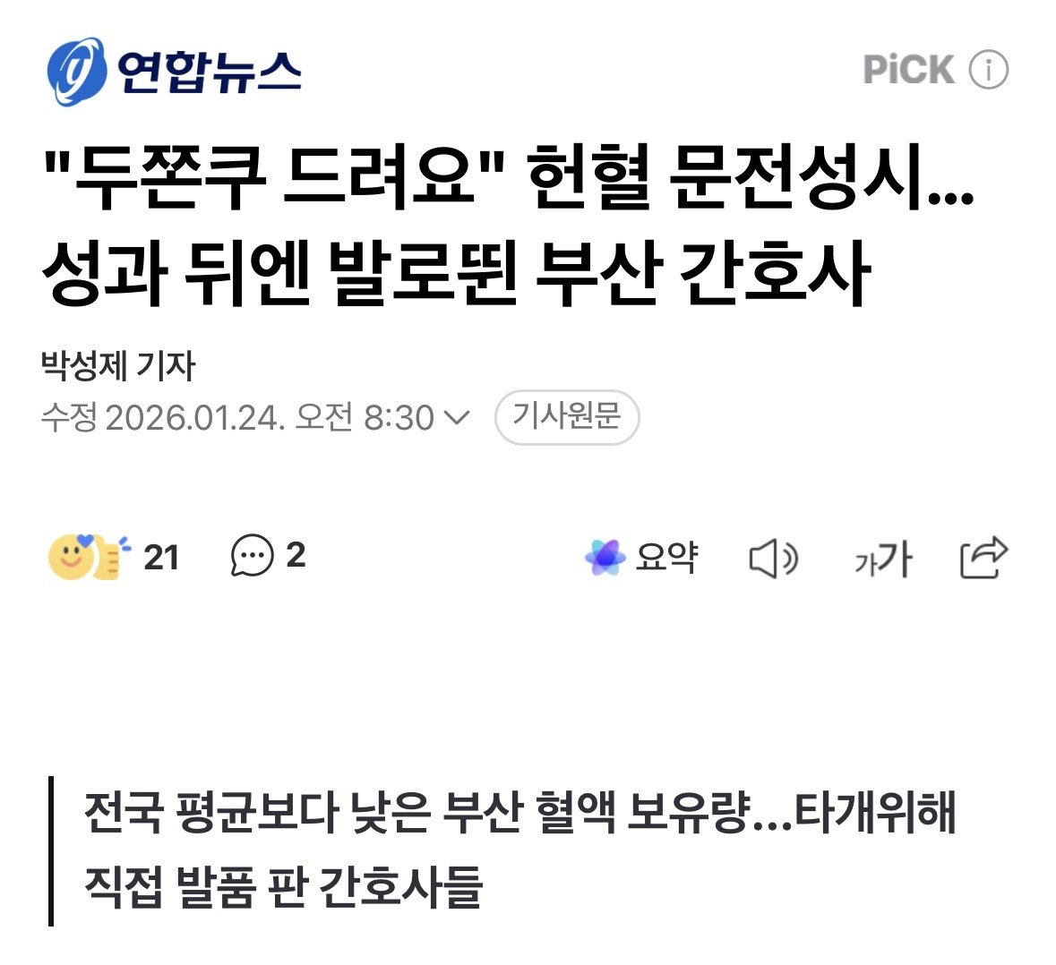 "두쫀쿠 드려요" 헌혈 문전성시…성과 뒤엔 발로뛴 부산 간호사